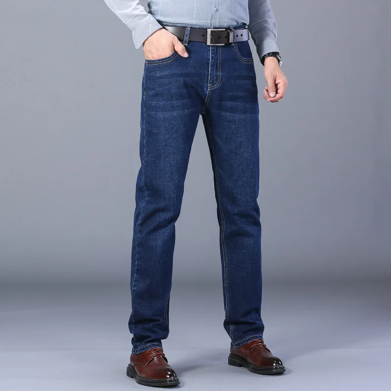 Mens Straight Stretch Denim Jeans Blue Black Casual Work Trousers
