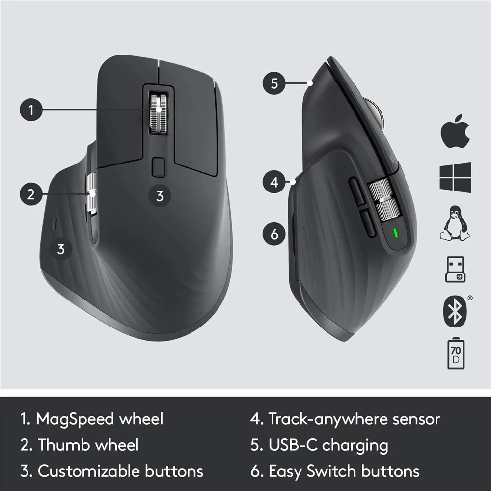 Logitech Upgraded MX Master 3/Master 2S/Anywhere 2S/Master 3S Wireless Bluetooth Mouse 2.4G Low Noise Ergonomic Design Mouse