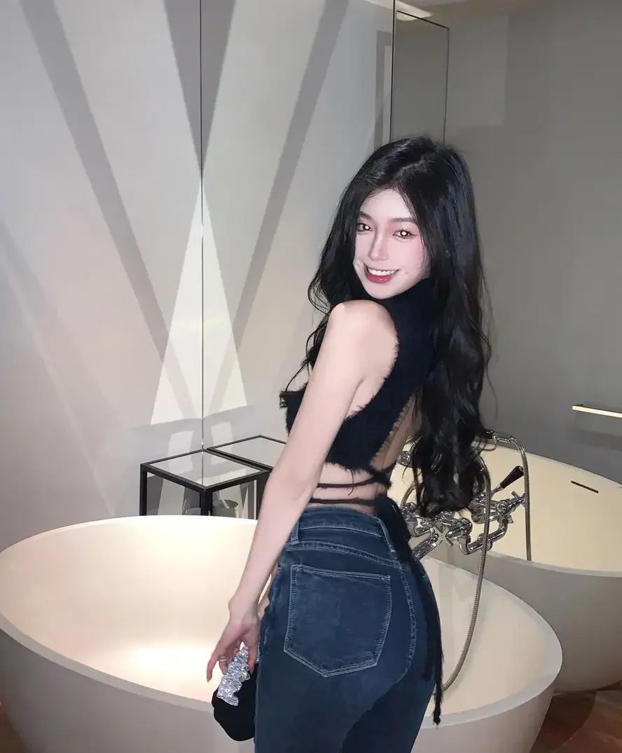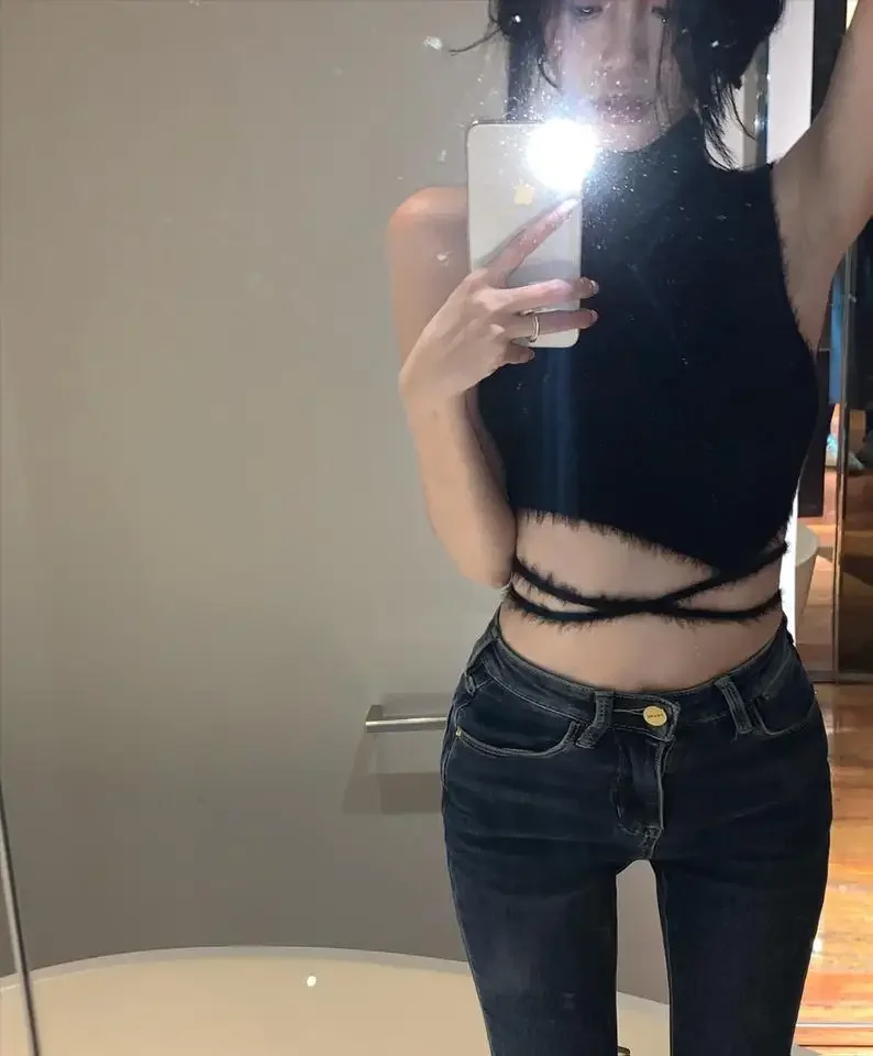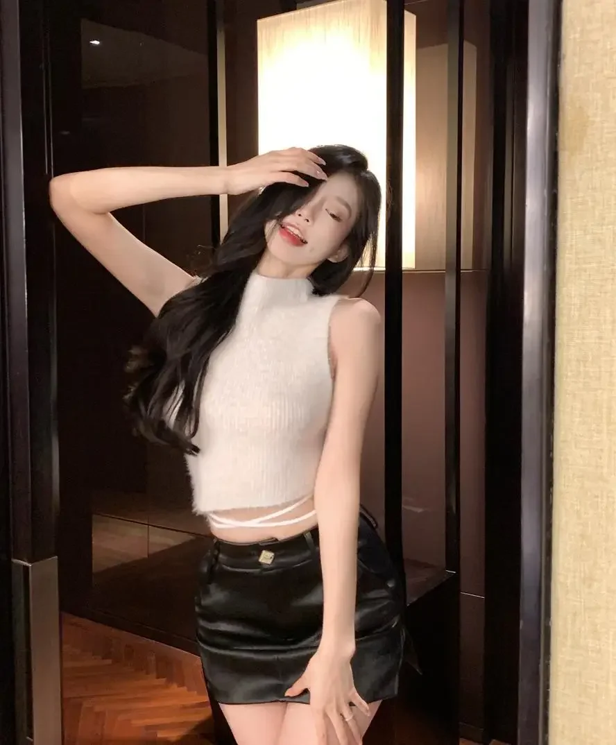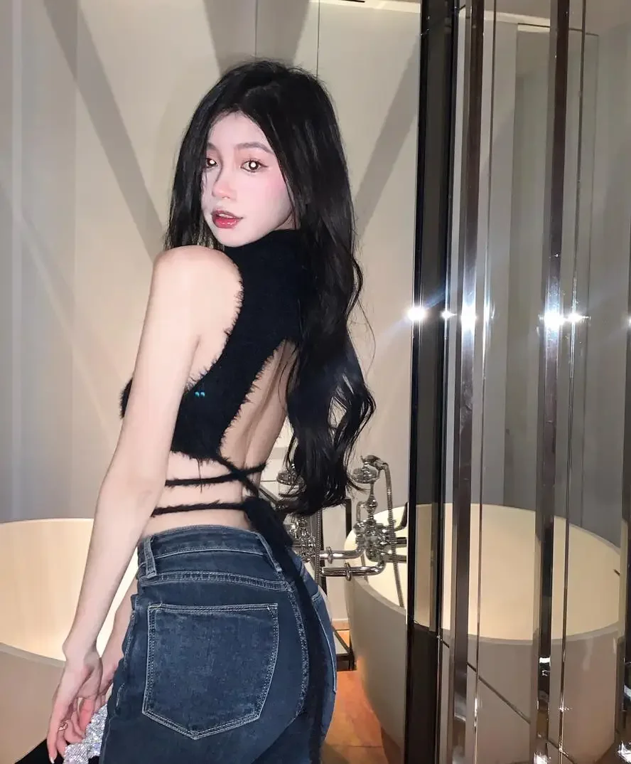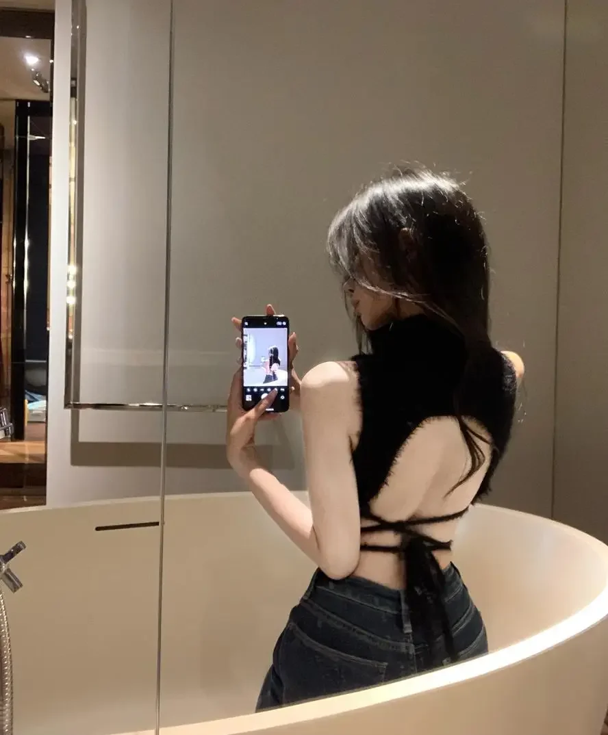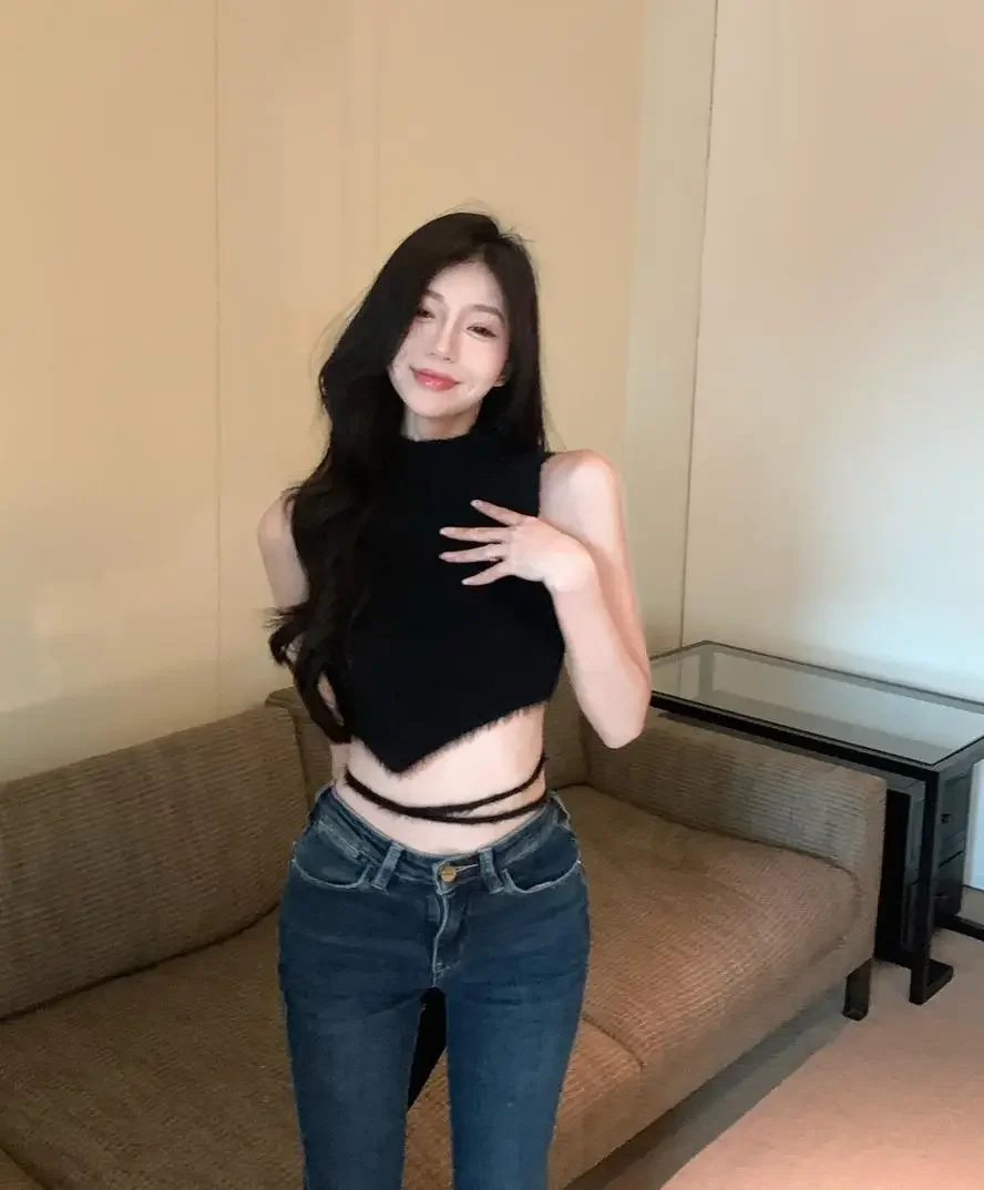 Women Knit Halter Crop Top Furry Lace Up Sleeveless