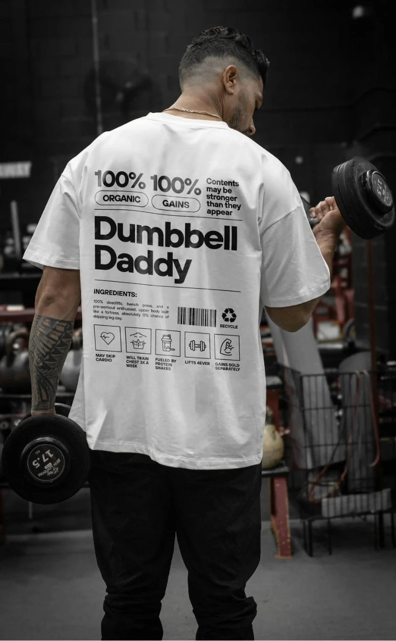2025 Gym T-Shirt for Men & Women – Cotton Training Top, Dumbbell Fitness Tee, Comfortable & Fashionable Gym Shirt