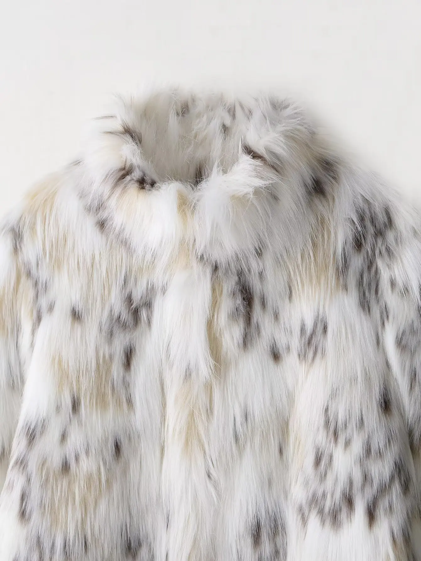 Women’s Winter Faux Fur Jacket – High Collar Long Sleeve Warm Elegant Street Style Outerwear
