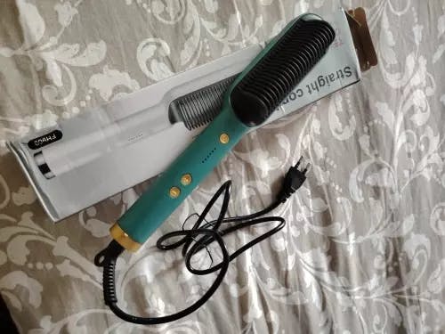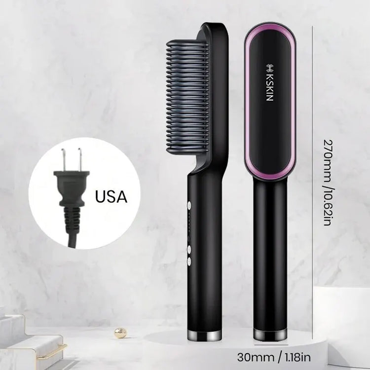 KSKIN 2-in-1 Hair Straightener Brush - Ionic Ceramic Hair Flat Iron Comb,Pink