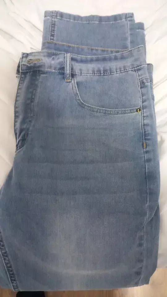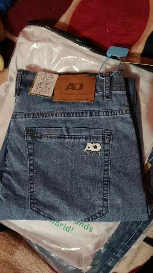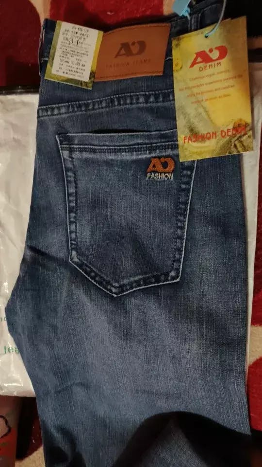 Men's jeans are made of classic blue denim fabric with a loose fit, making them an indispensable versatile item in the wardrobe.