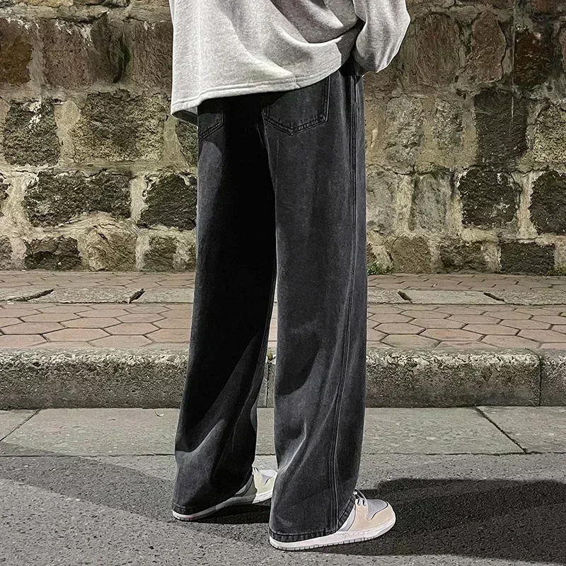 Mens Straight Loose Wide Leg Baggy Jeans Black Grey Blue Casual Pants