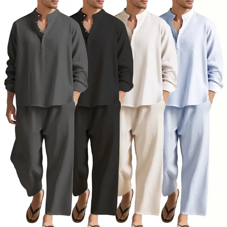 Men’s Long Sleeve Shirt and Pants Set Solid Color Tracksuit Beach Vacation Wear