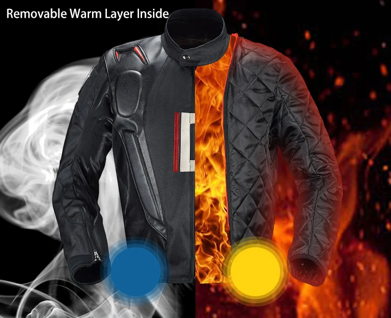 Motorcycle Jacket Leather Oxford Winter Jacket for Men and Women with 7 Protective Pads