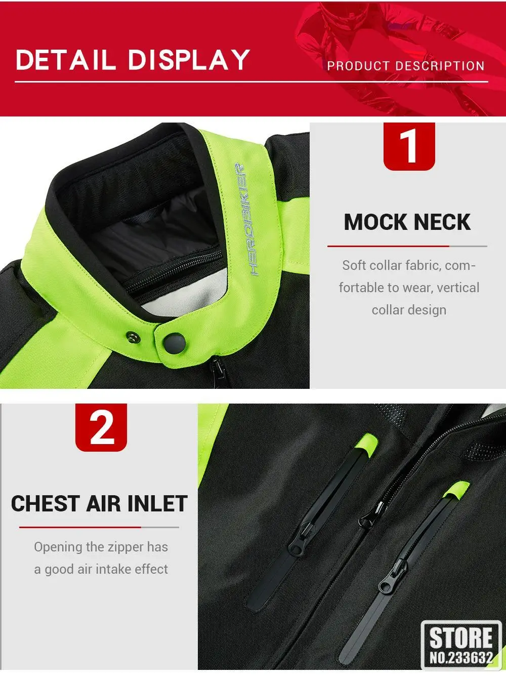 Removable neck protection design on the neck, riding more safer (neck protection requires separate purchase)