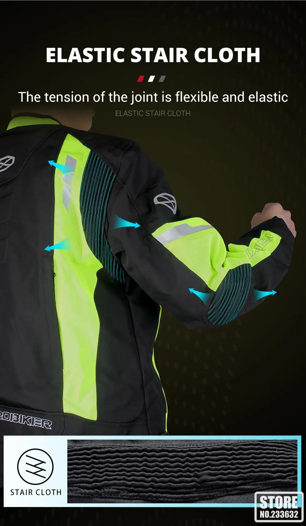 Folds design on the elbows and back, conform natural curvature, riding comfortable