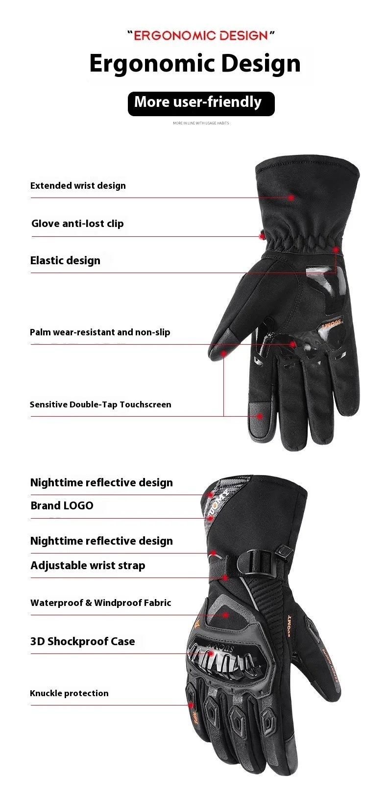 Motorcycle riding gloves are warm, waterproof, windproof, and anti fall in winter, with touch screens for electric bikes