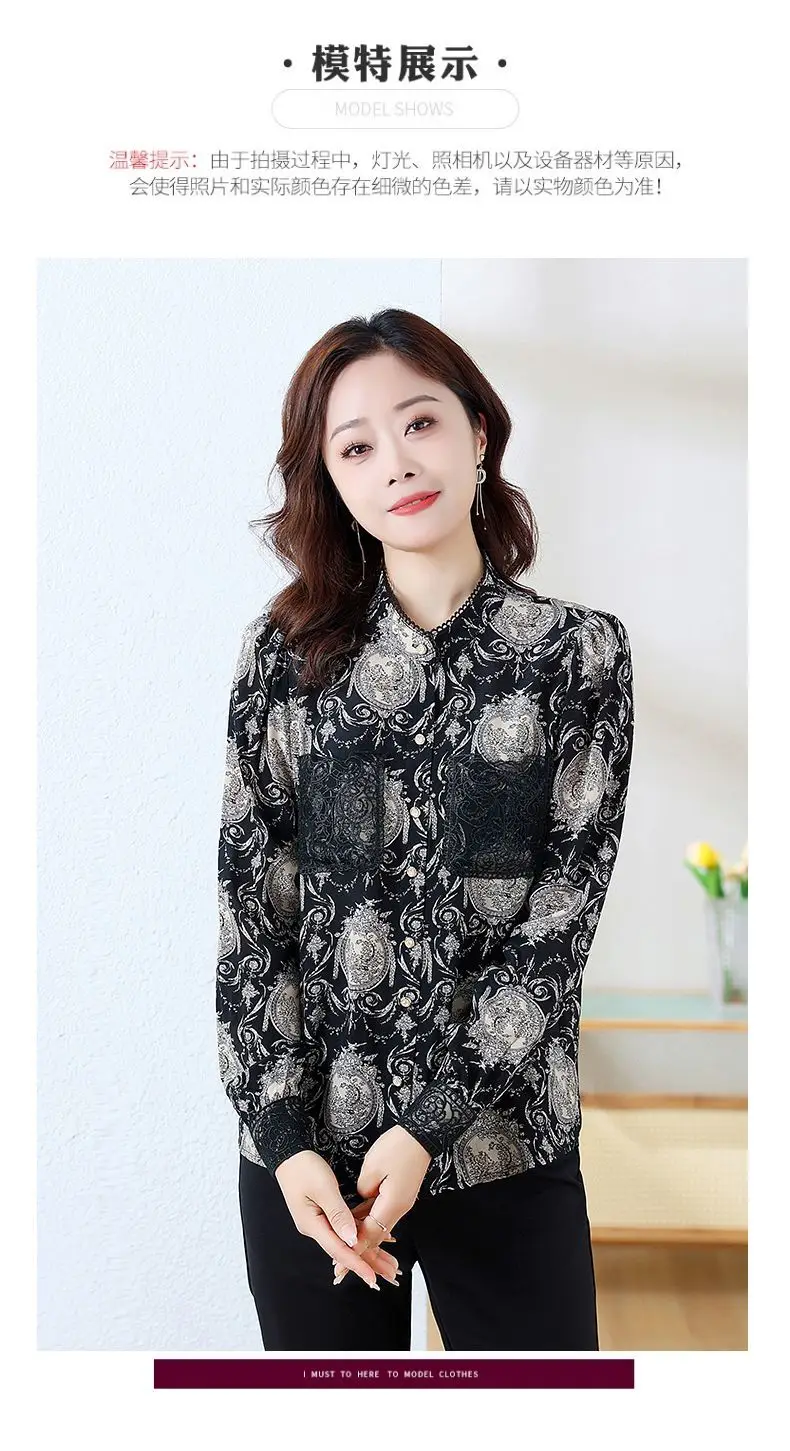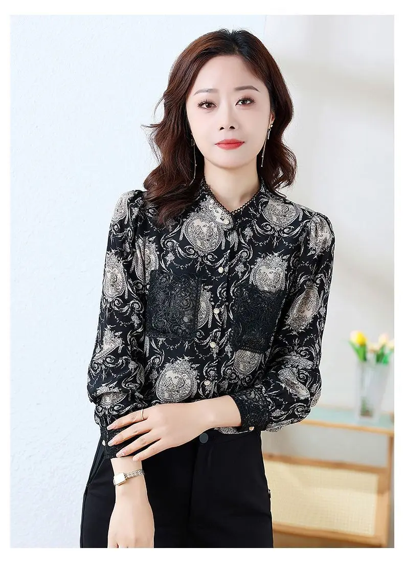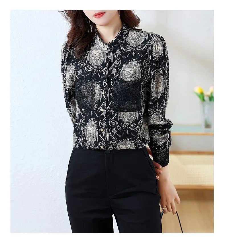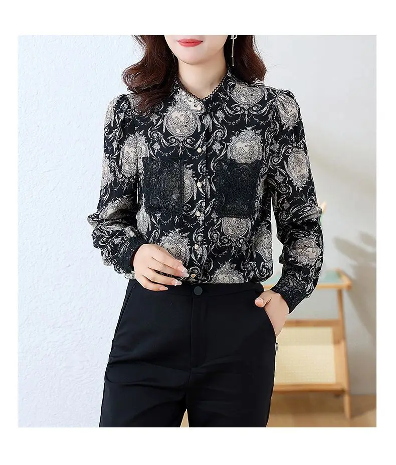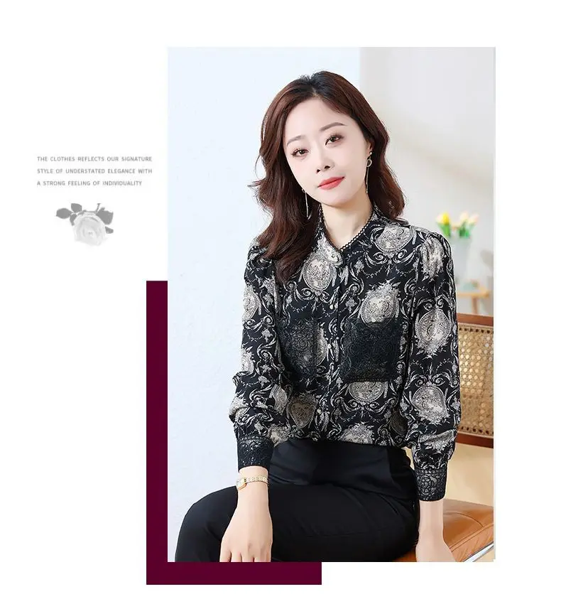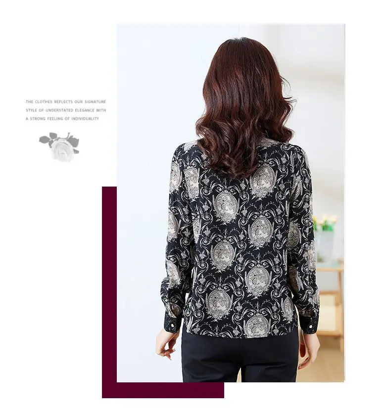 Women's Printed Satin Shirt - Slim Fit Long Sleeve Blouse for Spring & Autumn, Office Wear