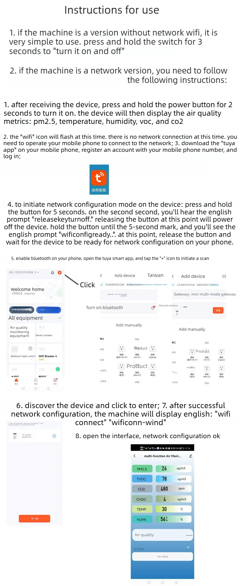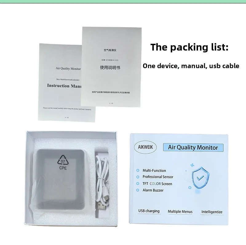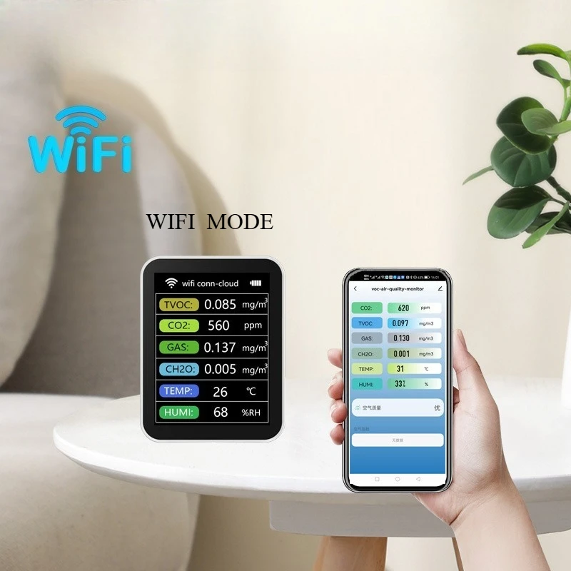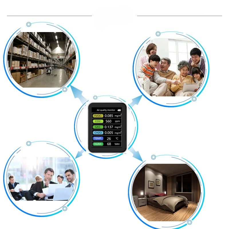 Smart Air Quality Monitor With Semiconductor Sensor For Home Office Real Time Detection PM2 5 CO2 Temperature Humidity