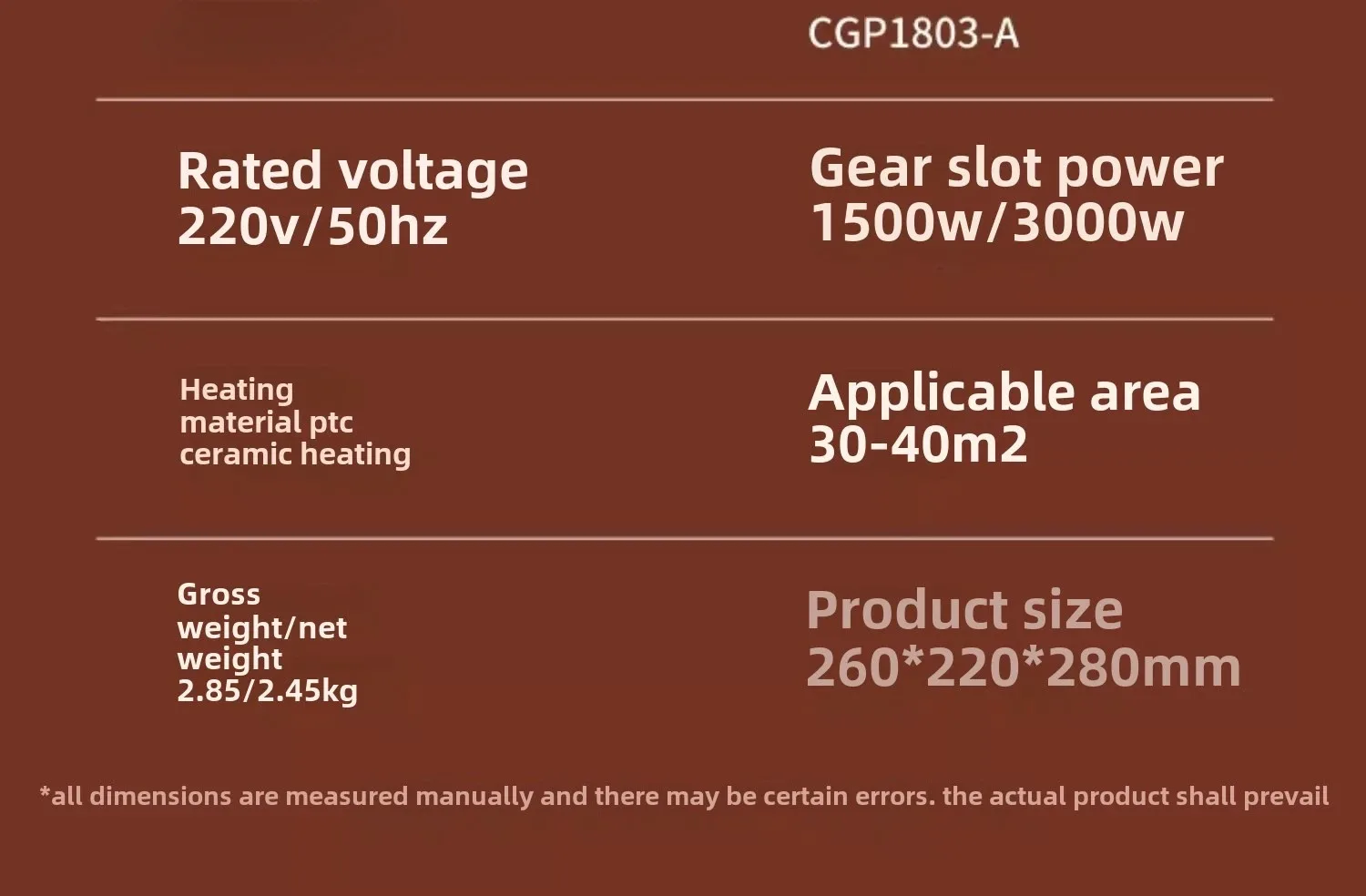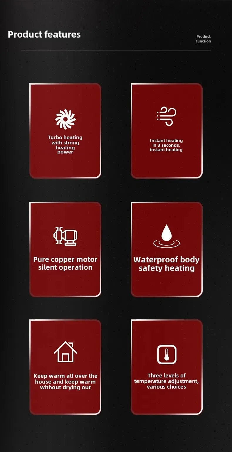 * Rapid Heating: High-efficiency motor, instant heating, ceramic PTC heating element, 3S fast heating, fast whole-house heating, comfortable heating without waiting.