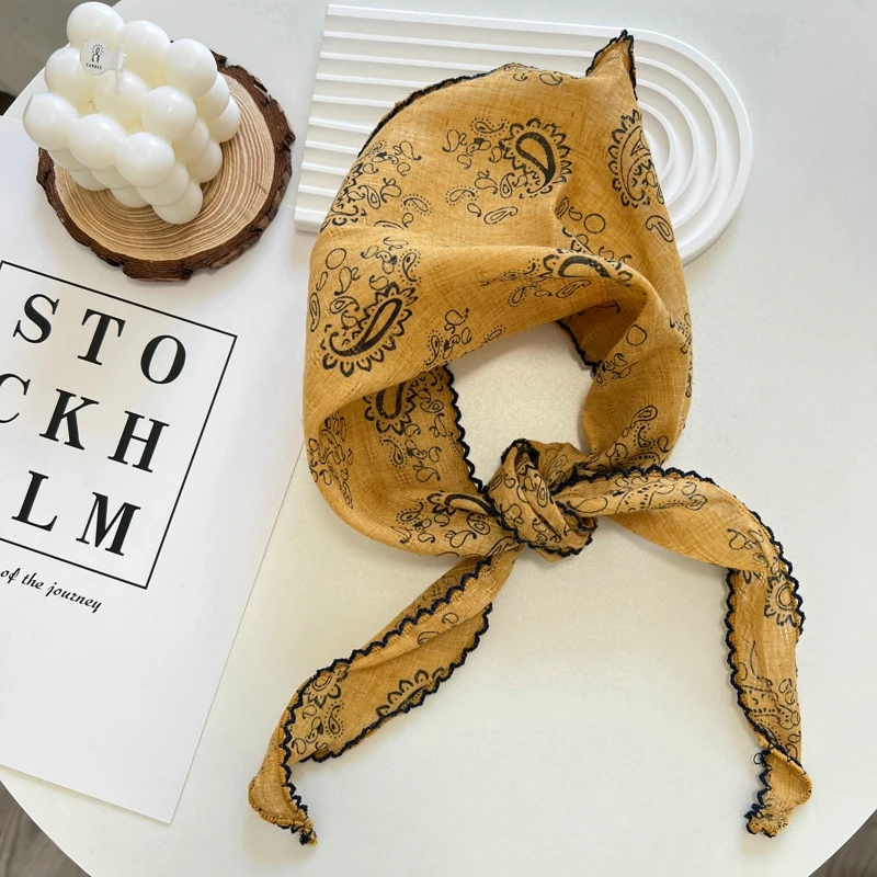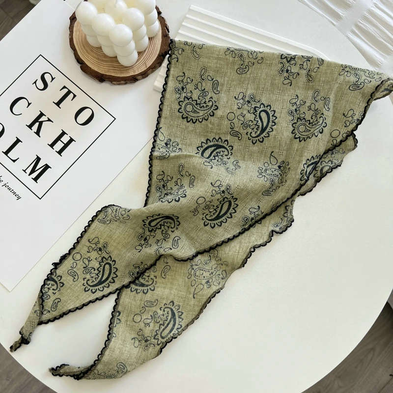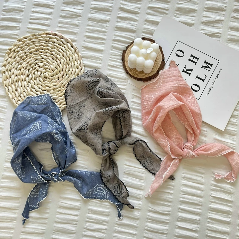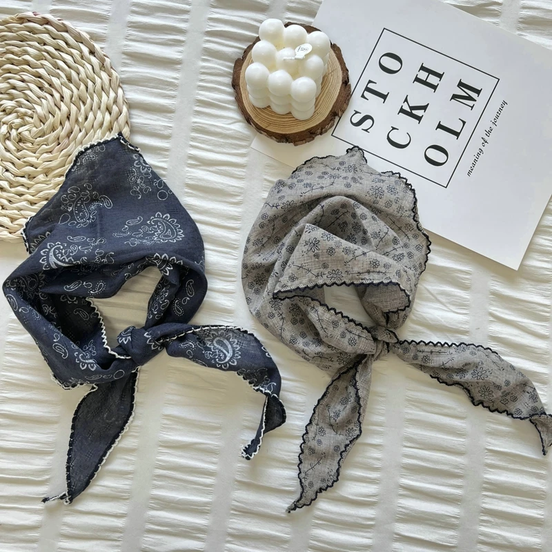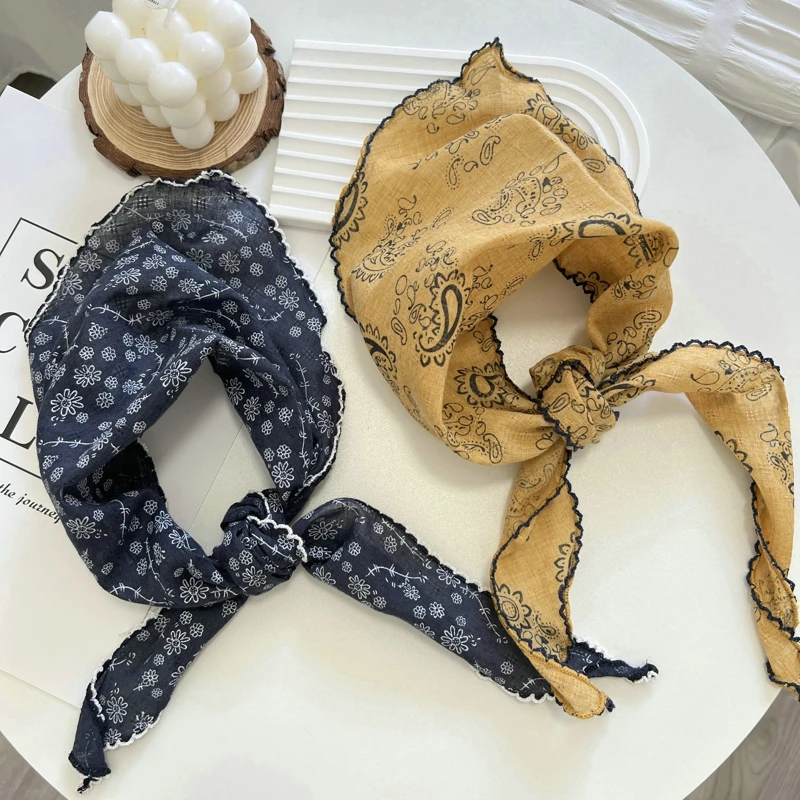 Summer Print Flower Neck Scarf Shawl Triangle Hair Head Wrap Headband Handkerchief Hair Ties Bandanas Hair Ribbon For Women