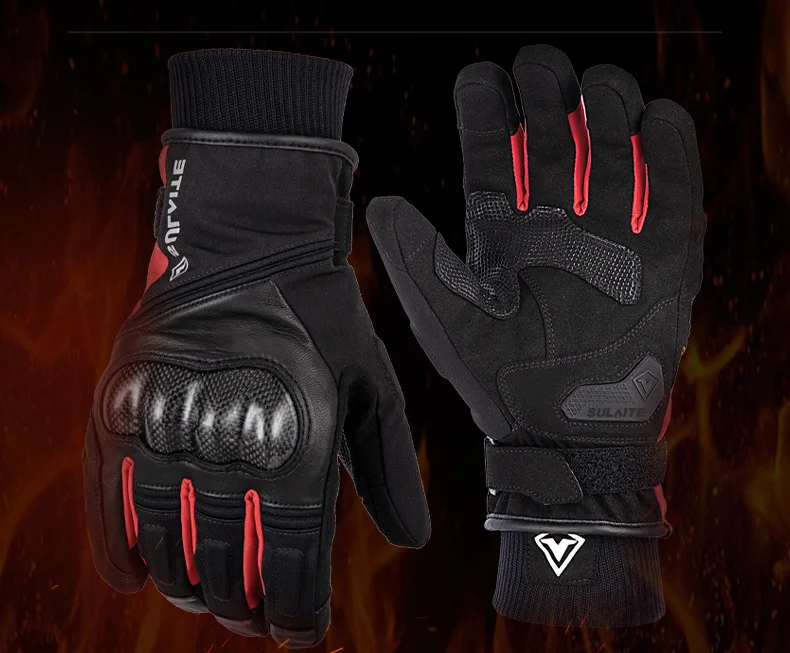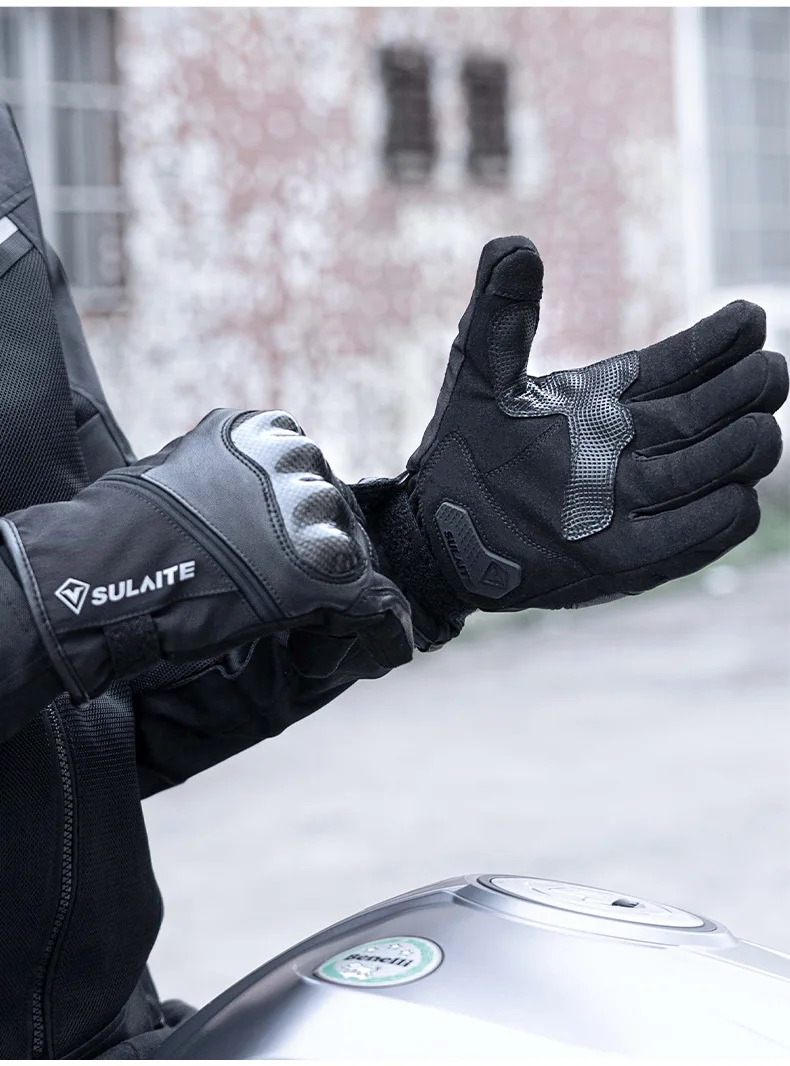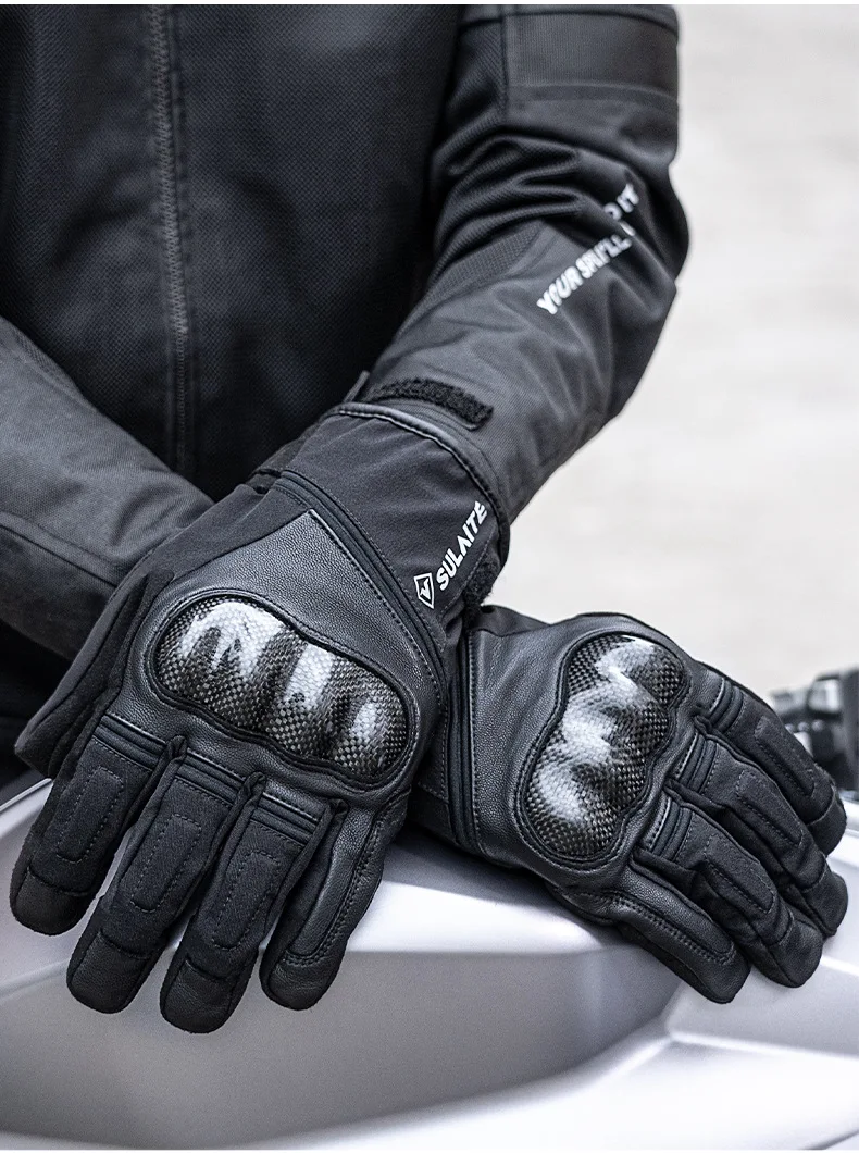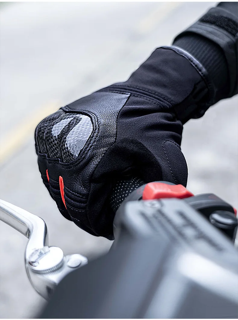 Waterproof Winter Motorcycle Gloves Genuine Goatskin Leather Warm Touch Screen