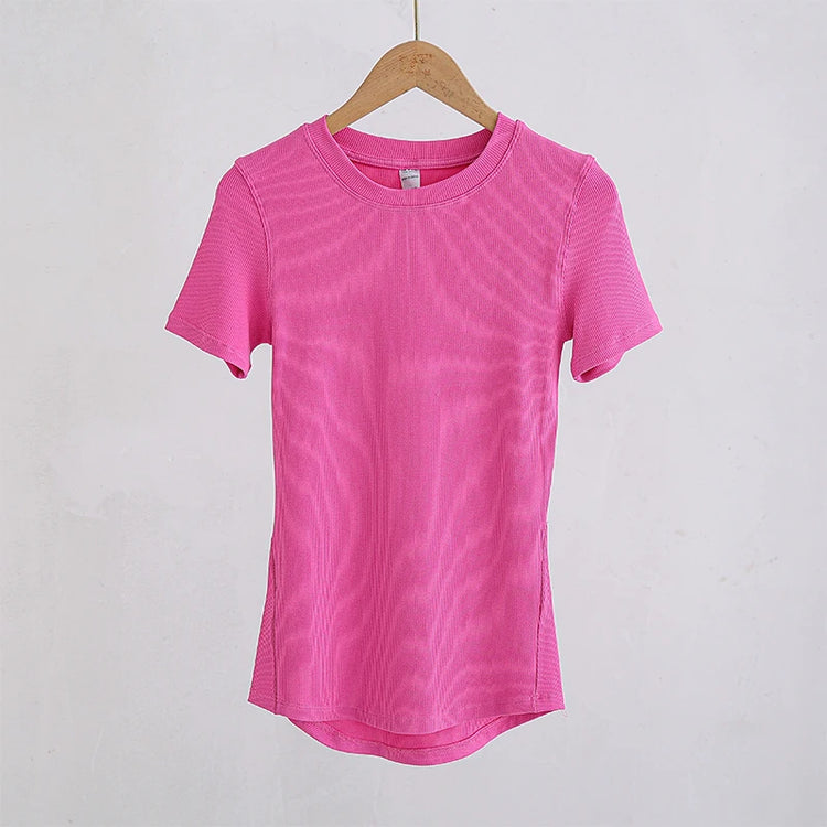 Women’s Slim-Fit Yoga T-Shirt - Short Sleeve Seamless Top for Pilates & Gym